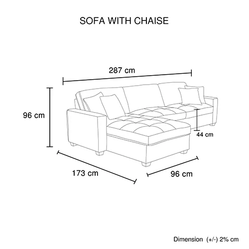 Looking for a modern chaise sofa set which not only ensures comfort but also looks great? Our Milano sofa would be a perfect fit for you with its premium upholstery and super comfy seat. Its thick padded cushions and pillows make this sofa a desired one for every sophisticated living room.