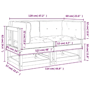 - Back cushion dimensions: 60 x 32 x 12 cm (L x W x T)
