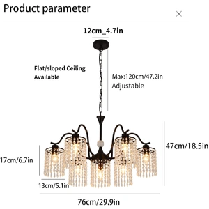 - This crystal chandelier lighting is perfect for any ceiling, whether sloped, arched or flat. Create a superior and classy atmosphere in any room of your home, from the living room to the bedroom, bathroom, kitchen, dining room, foyer and more. Light up your space with this stunning ceiling light fixture.