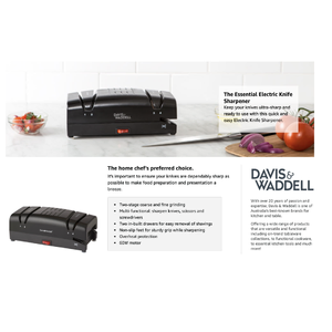 - The Davis Waddell Electric Knife Sharpener is a multifunctional tool designed to keep your knives, scissors and screwdrivers at optimal sharpness. Quick and easy to use, ensure your food preparation blades are dependable and ready to use each time.