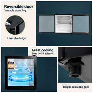 Our portable Devanti Bar Fridge is great for keeping a variety of food and beverages chilled and cooled without taking up too much space. Designed with six temperature settings, the energy-efficient bar fridge lets you set your desired coolness and freshness. Other great features include adjustable shelves, double-glazed door, height-adjustable feet, built-in handle and consistent refrigeration to name a few. The compact bar fridge is well-made for robust use, such as the extra thick insulation and a built-in LED lamp to ensure operation is smooth, quiet and hassle-free. This versatile countertop fridge can also be used as a freestanding unit.An ideal mini fridge for any space.