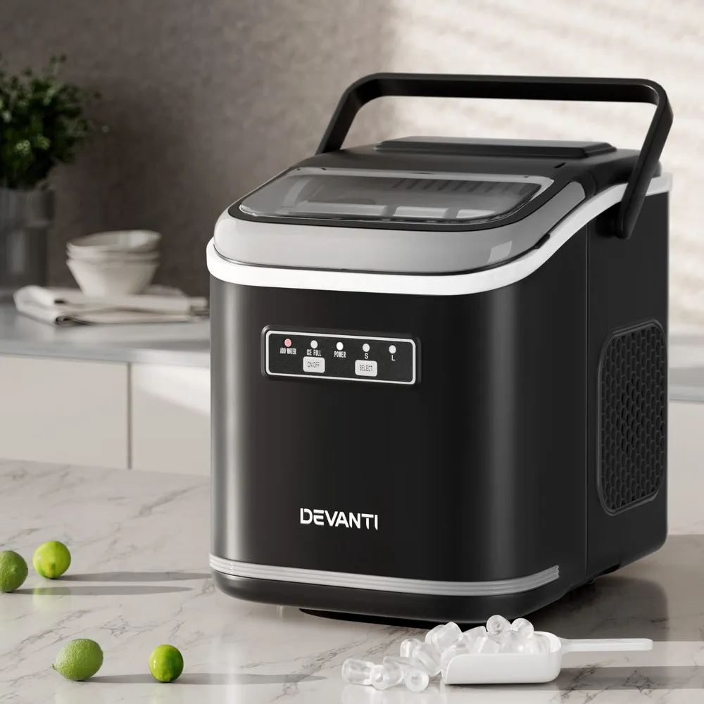 Looking for ice in a hurry? Meet our Devanti Ice Maker! Quickly produce 9 ice cubes in 6-13 minutes. It's loaded with smart features like water shortage and ice full alarms, plus energy-saving technology through Freon-free refrigerant and enhanced heat dissipation. Its sleek, compact design fits anywhere, and with its easy-to-use controls, you'll be enjoying cold beverages in no time. Ice at home has never been cooler!