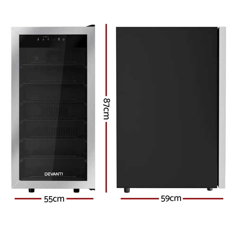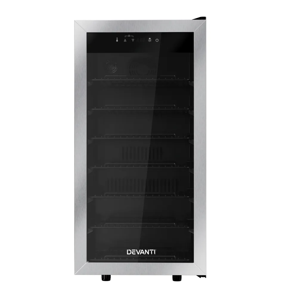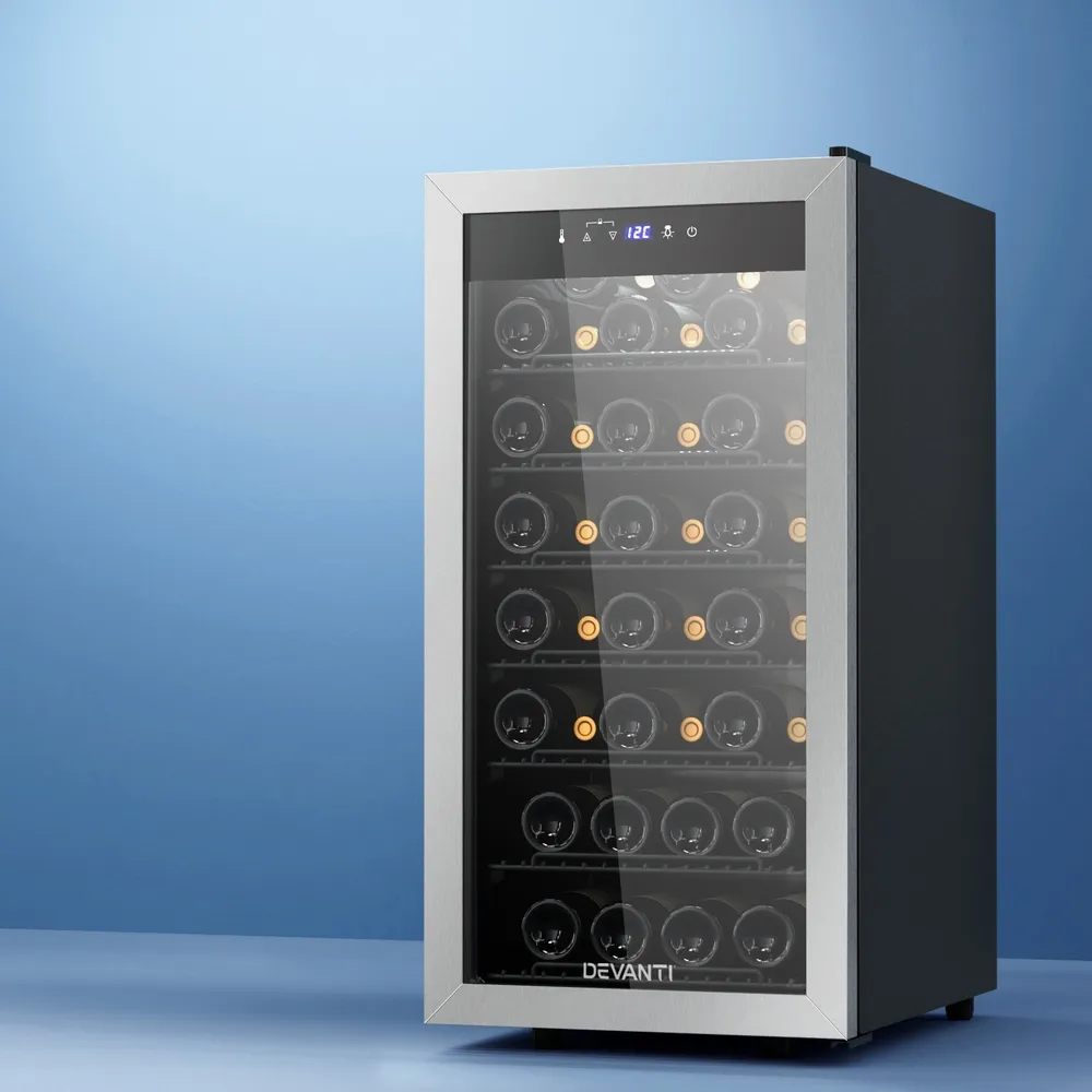 Experience the essence of fine wine with our state-of-the-art Devanti wine cooler. Ensuring precise temperature consistency, its contemporary design complements any decor while safeguarding your collection. Featuring a 360 degrees cooling system, UV-resistant glass, and built-in lighting, it effortlessly merges elegance with functionality. Whether you arecurating a collection or simply savoring favorites, ensure they are served at their finest.