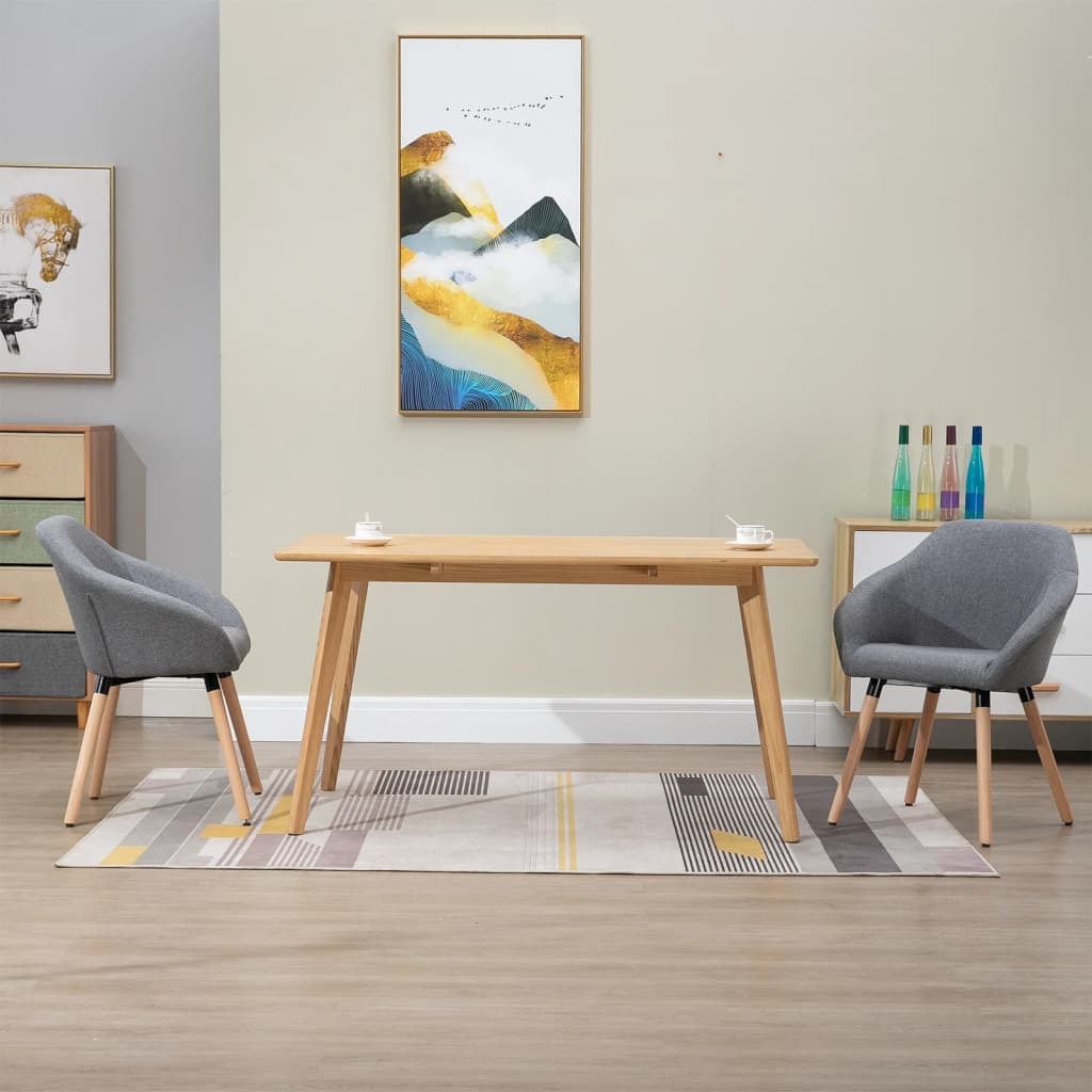 Made from quality fabric, this set of 2 dining chairs is aesthetically and ergonomically designed to make a cosy highlight in your home. It provides a comfortable place for your family to have dinner in the dining room or read and rest in the living room. Thanks to the thickly foam padded seat, armrests and backrest, our chairs will surely bring you optimal seating comfort. Additionally, the black metal and solid wood legs bring super stability and ensure the chairs excellent durability.