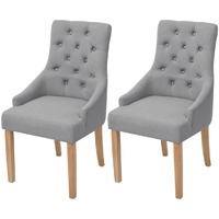 These high-quality dining chairs with armrests have a luxurious and charming design, and will add a romantic touch to your decor. The chairs will be ideal for having dinner in the dining room, or reading and relaxing in the living room. Thanks to the oak wood legs, the chairs are durable and stable. The thickly padded seats and backrests contribute to their superior comfort. Delivery includes 2 dining chairs.
