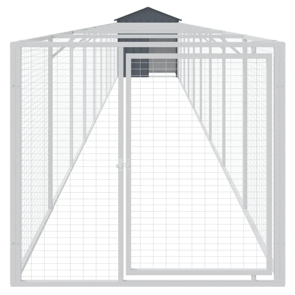 Provide safety and comfort for your furry friends with this dog house with run. Versatile use: Combing with the extended run, the versatile doghouse provides ample space for your pet. It features multiple uses: playing, exercising, training, or simply keeping your puppy safe. It will be the perfect play paradise for your furry friends!Durable construction: Thanks to the sturdy and heavy-duty galvanised steel construction, the dog kennel is durable and built to last.Mesh design: The mesh design of the extended run helps prevent mischief and unexpected accidents while enabling ventilation.Practical roof: The roof of the dog cage protects the puppy from the sun, rain, snow, and other weather conditions.Convenient access: There is an entrance to the animal house and a door with a latch on the extended run, both making it easy to get in and out.