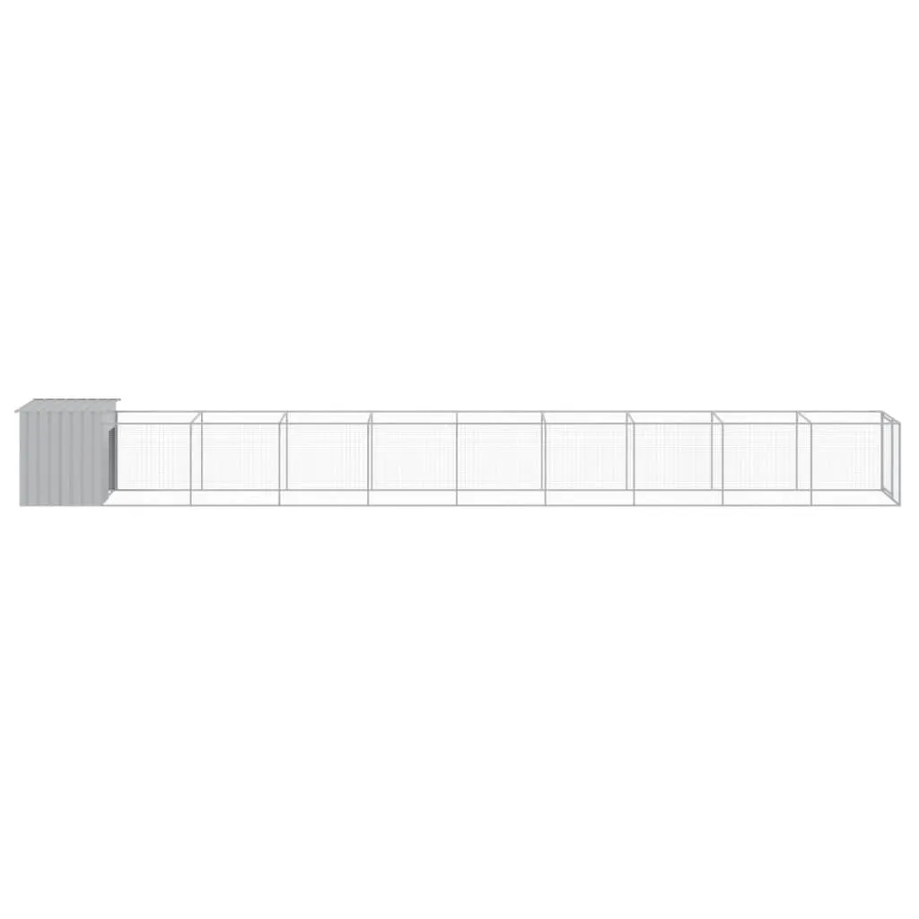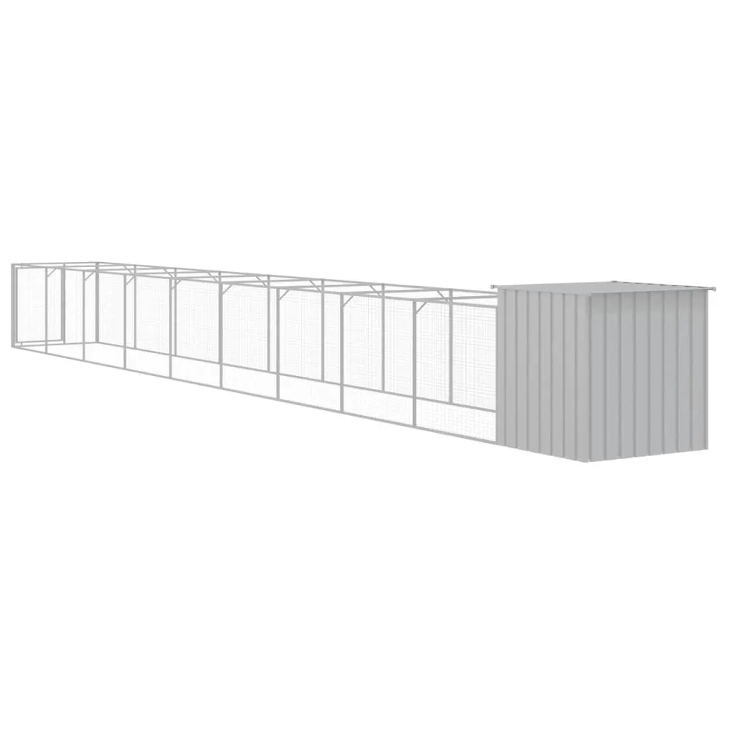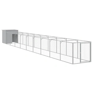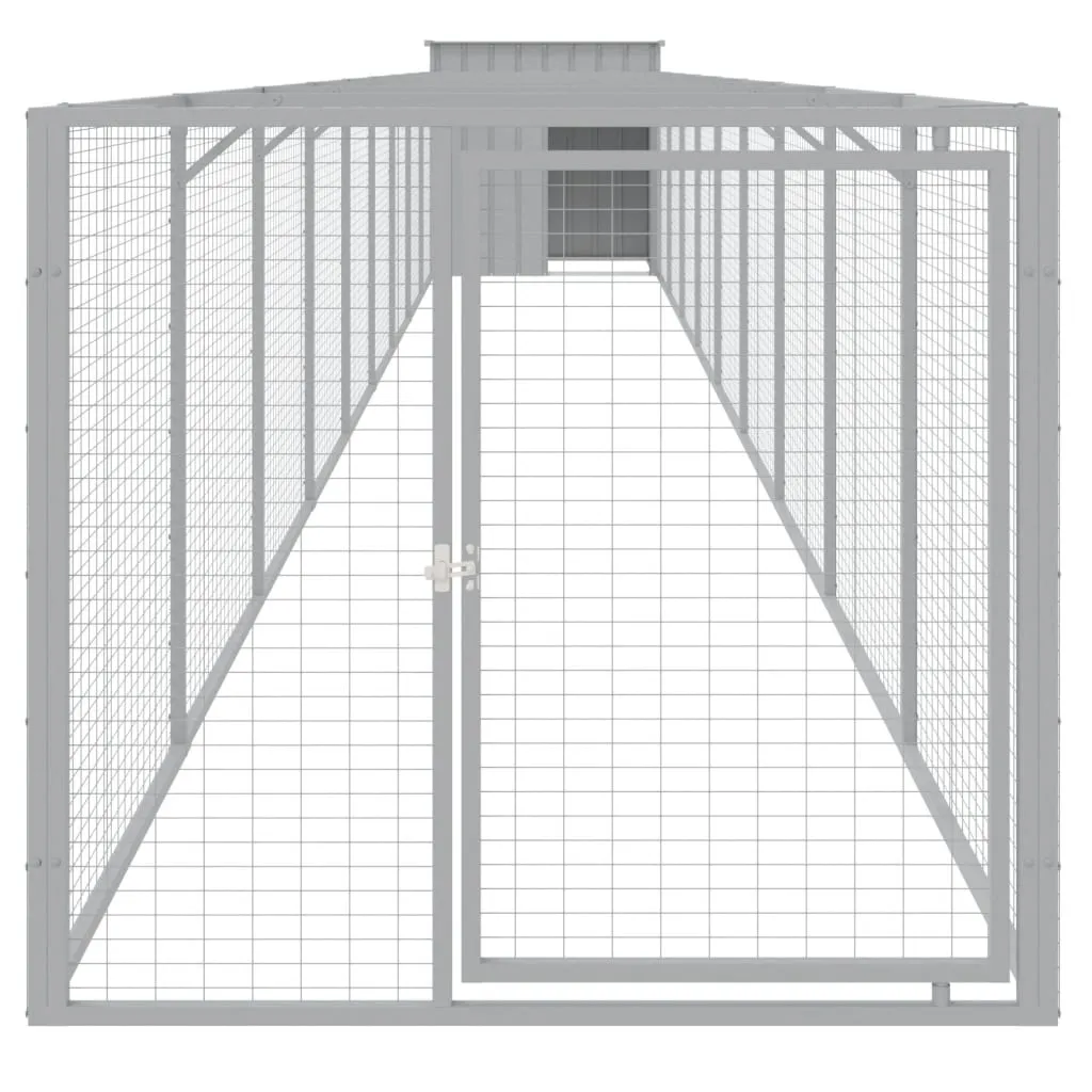 Provide safety and comfort for your furry friends with this dog house with run. Versatile use: Combing with the extended run, the versatile doghouse provides ample space for your pet. It features multiple uses: playing, exercising, training, or simply keeping your puppy safe. It will be the perfect play paradise for your furry friends!Durable construction: Thanks to the sturdy and heavy-duty galvanised steel construction, the dog kennel is durable and built to last.Mesh design: The mesh design of the extended run helps prevent mischief and unexpected accidents while enabling ventilation.Practical roof: The roof of the dog cage protects the puppy from the sun, rain, snow, and other weather conditions.Convenient access: There is an entrance to the animal house and a door with a latch on the extended run, both making it easy to get in and out.