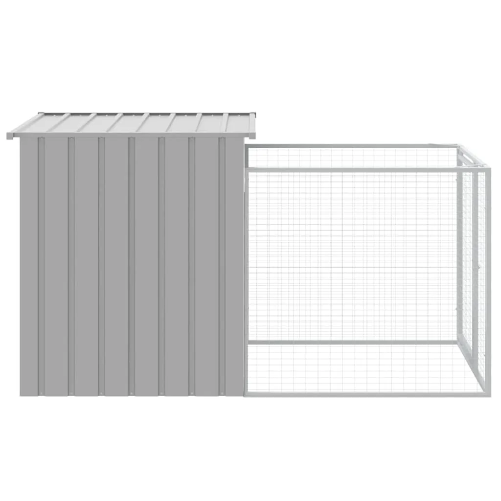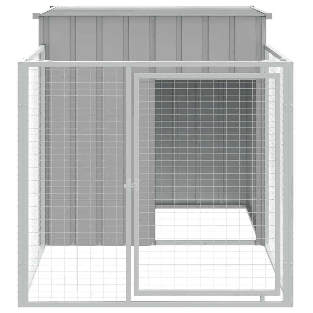 Provide safety and comfort for your furry friends with this dog house with run. Versatile use: Combing with the extended run, the versatile doghouse provides ample space for your pet. It features multiple uses: playing, exercising, training, or simply keeping your puppy safe. It will be the perfect play paradise for your furry friends!Durable construction: Thanks to the sturdy and heavy-duty galvanised steel construction, the dog kennel is durable and built to last.Mesh design: The mesh design of the extended run helps prevent mischief and unexpected accidents while enabling ventilation.Practical roof: The roof of the dog cage protects the puppy from the sun, rain, snow, and other weather conditions.Convenient access: There is an entrance to the animal house and a door with a latch on the extended run, both making it easy to get in and out.