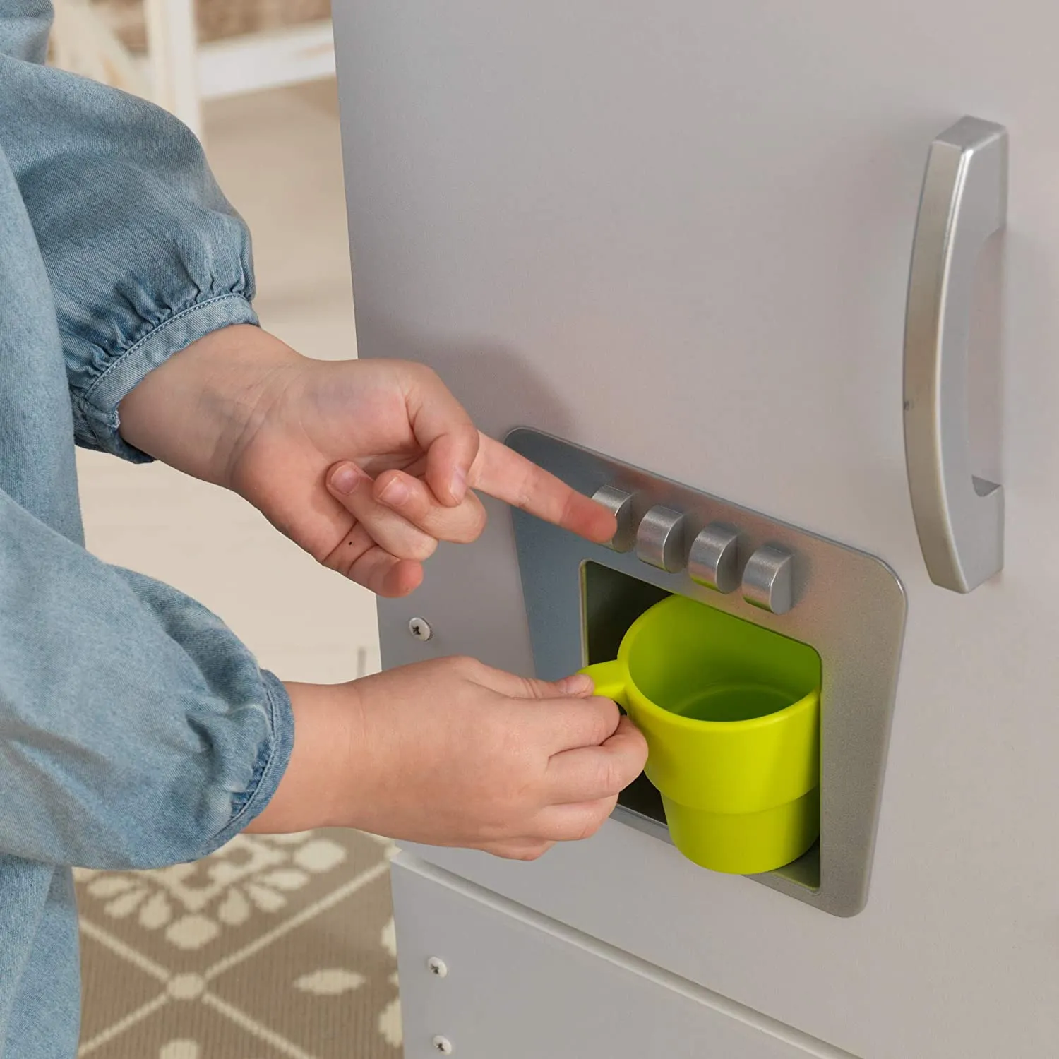 - Bon Apptit. Our Vintage Kitchen in White lets kids pretend they are cooking big feasts for the whole family. With its close attention to detail and interactive features, this adorable kitchen would make a great gift for any of the young chefs in your life. Doors open and close. Oven knobs click and turn. Cordless phone. Removable sink for easy cleanup.