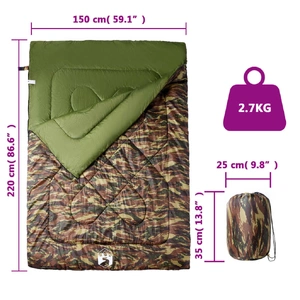 Experience comfort during your adventures with this double sleeping bag. Whether you’re camping, hiking, or traveling, it’s your perfect companion. Long-lasting and water-resistant: This sleeping bag is composed of polyester outer shell and PP padding, making it long-lasting, moisture-proof, water-resistant, and weather-resistant.Comfortable and warm: The sleeping bag is filled with polypropylene, and you can pull the drawstring cord to tighten the hood around your head, ensuring a warm and comfortable sleep. Double-side zipper: The sleeping bag is equipped with a double-sided zipper, which improves internal airflow and enables easy temperature regulation within the sleeping bag. Additionally, it has secure straps, which help to prevent the zip from coming loose.Easy to carry and store: This sleeping bag is lightweight and can be perfectly stored in a compact hand-carry bag after rolling up, minimising space usage. Additionally, it features tape for hanging, making it convenient to carry and store. 2-in-1 design: This sleeping bag comes with two pillows and serves a dual purpose: it can be used either as a double sleeping bag for couples or split into two single sleeping bags. Its versatile design makes it ideal for couples, groups of friends, families, and solo travelers. Wide applications: This sleeping bag ensures a good and relaxing sleep after a tiring day of camping, trekking, hiking, travel, or any other exploration. It can be used in spring, summer, autumn, and winter.