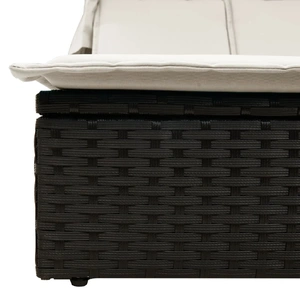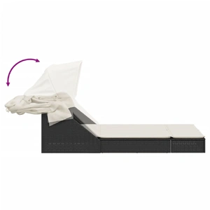 Relax and enjoy the outdoors in this comfortable double sun lounger! Durable material: PE rattan, also known as poly rattan, is a strong, low-maintenance synthetic material that looks like natural rattan. It's lightweight, easy to clean, and commonly used for outdoor furniture due to its durability and weather-resistant properties. Adjustable backrest: This outdoor furniture features a backrest with 2 adjustable positions, allowing you to easily find the most comfortable and suitable position for relaxation. Retractable canopy: Thanks to the retractable canopy, you can create a cool, pleasant outdoor environment throughout the day. Comfortable seat experience: This outdoor furniture, complete with thickly padded cushions, offers a comfortable seating experience. Removable and washable cover: These seat cushions feature removable covers for easy washing and maintenance. Good to know:To make sure your outdoor furniture stays beautiful, we recommend protecting it with a waterproof cover.