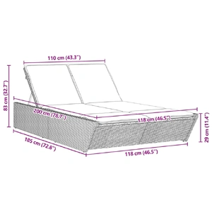 Relax and enjoy the outdoors in this comfortable double sun lounger! Durable material: PE rattan, also known as poly rattan, is a strong, low-maintenance synthetic material that looks like natural rattan. It's lightweight, easy to clean, and commonly used for outdoor furniture due to its durability and weather-resistant properties. Adjustable backrest: This outdoor furniture features a backrest with 4 adjustable positions, allowing you to easily find the most comfortable and suitable position for relaxation. Comfortable seat experience: This outdoor furniture, complete with thickly padded cushions, offers a comfortable seating experience. Removable and washable cover: These seat cushions feature removable covers for easy washing and maintenance. Robust and stable frame: The powder-coated steel frame ensures that the garden furniture is strong and stable for daily outdoor use. Good to know:To make sure your outdoor furniture stays beautiful, we recommend protecting it with a waterproof cover.