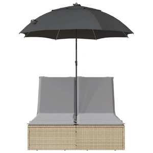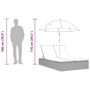 Relax and enjoy the outdoors on this comfortable double sun lounger! Durable material: PE rattan, also known as poly rattan, is a strong, low-maintenance synthetic material that looks like natural rattan. It's lightweight, easy to clean, and commonly used for outdoor furniture due to its durability and weather-resistant properties.Adjustable backrest: This outdoor furniture features a backrest with 4 adjustable positions, allowing you to easily find the most comfortable and suitable position for relaxation.Practical parasol: The sun lounger features a parasol with a tilt mechanism, allowing you to easily adjust the canopy for optimal shade and protection from the sun.Comfortable seat experience: This outdoor furniture, complete with thickly padded cushions, offers a comfortable seating experience.Removable and washable cover: These seat cushions feature removable covers for easy washing and maintenance. Good to know:To make sure your outdoor furniture stays beautiful, we recommend protecting it with a waterproof cover.