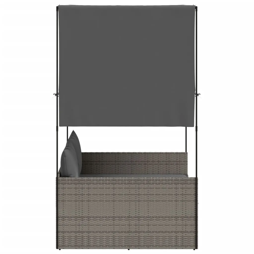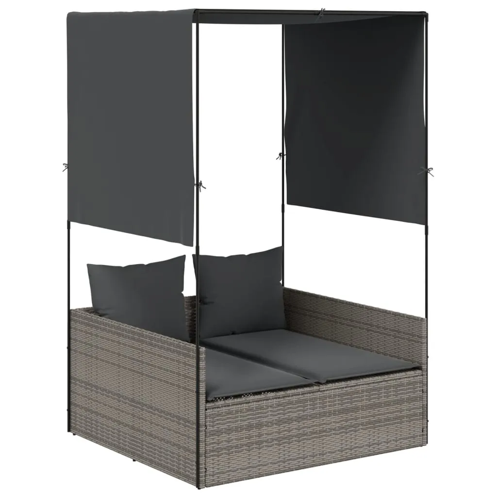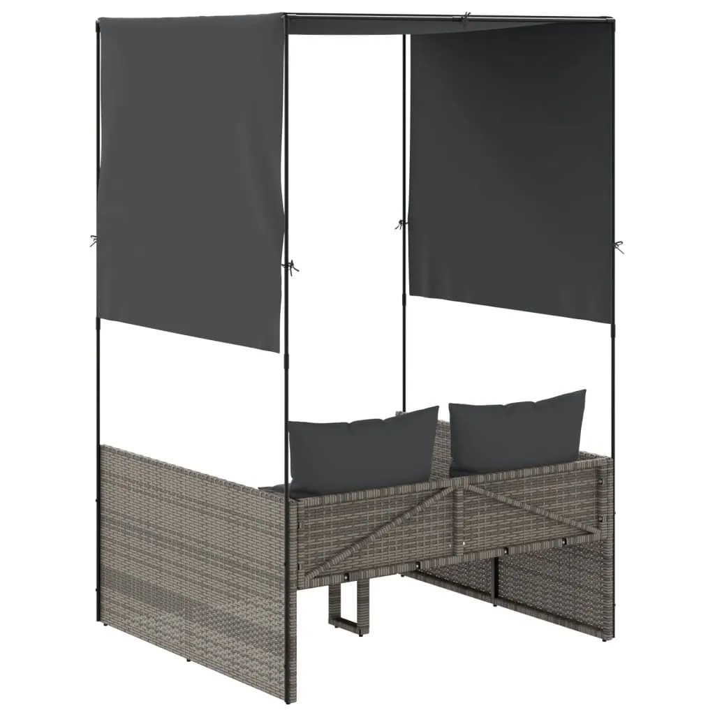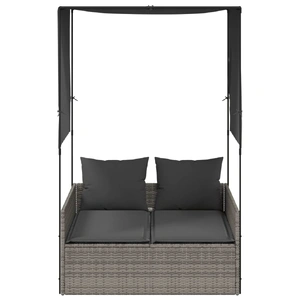Relax and enjoy the outdoors on this comfortable double sun lounger! Durable material: PE rattan, also known as poly rattan, is a strong, low-maintenance synthetic material that looks like natural rattan. It's lightweight, easy to clean, and commonly used for outdoor furniture due to its durability and weather-resistant properties.Practical roof and curtains: Thanks to the roof and curtains, you can create a cool, pleasant outdoor environment throughout the day.Comfortable seat experience: The outdoor furniture set, complete with thickly padded cushions, offers a comfortable seating experience.Removable and washable cover: This seat cushion features a removable cover for easy washing and maintenance. Good to know:To make sure your outdoor furniture stays beautiful, we recommend protecting it with a waterproof cover.