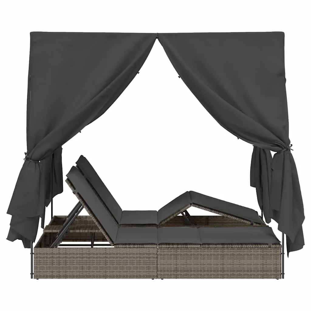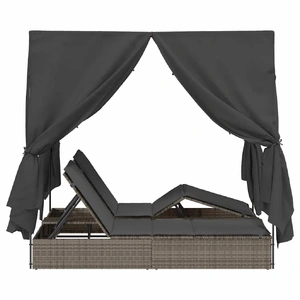 Check out this brilliant Outdoor Double Sun Lounger with Roof and Curtains—it’s the ultimate for outdoor chillin'. Imagine yourself soaking up the sun on a lovely morning or kicking back on a breezy evening, all while relaxing in this fab lounger. Its stylish design and flexible layout make it a top choice for gardens or patios, giving you an awesome outdoor experience. Top Quality Materials: This lounger is crafted from PE rattan, looking slick while being UV-resistant and weatherproof. The steel frame adds stability and strength, making it perfect for outdoor use, and it’ll last for ages. All the Essentials: Comes with a roof fabric, 8 side curtains, and 2 seat cushions included. The curtains give you some privacy, and the removable cushion covers are super easy to clean, which is a big plus. Comfort-Focused Design: With adjustable backrest and footrest options, this double sun lounger has your comfort sorted. You’ll easily find the best position to kick back, soak up the sun, or read your fave book. Multi-Purpose Use: Perfect for any outdoor area like gardens or patios, this lounger's made for outside fun. It’s an awesome buddy for summer evenings watching the sunset or calm mornings meditating in peace. Simple Maintenance: The seat cushions have removable covers that are a breeze to wash, keeping them looking good over time. The PE rattan and metal frame just need a quick wipe down, making it super low maintenance.