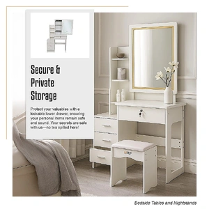 - Stay Organised in Style - Keep all your beauty essentials neatly arranged with four spacious drawers and multiple shelves. This vanity table provides plenty of storage to keep your makeup, skincare, and accessories within easy reach.