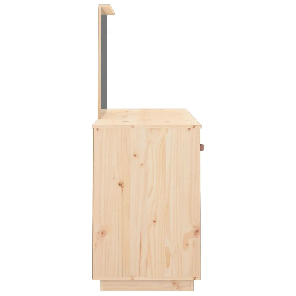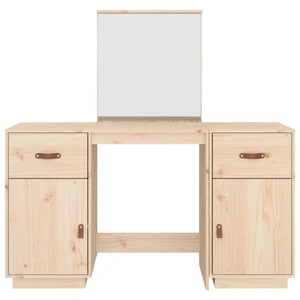 This classic wooden dressing table set with a mirror is an excellent addition to your bedroom decor. So you can keep your cosmetics within reach! Solid pine wood: Solid pine wood is a beautiful natural material. Pine wood has a straight grain, and the knots give the material its signature, rustic look.Ample storage: This makeup table provides ample space and easy access to your make-up, jewellery and daily essentials.Utility mirror: The included beautiful mirror provides a clear view for makeup application and adds an elegant touch to the vanity table.Practical door: Keep your essentials free from dust by hiding them behind the door of this makeup vanity desk.Wide applications: This vanity desk is suitable anywhere, such as your bedroom, cloakroom and any other room you want to place it in. Warning:In order to prevent overturning, this product must be used with the wall attachment device provided. Note:Each product comes with an assembly manual in the box for easy assembly.