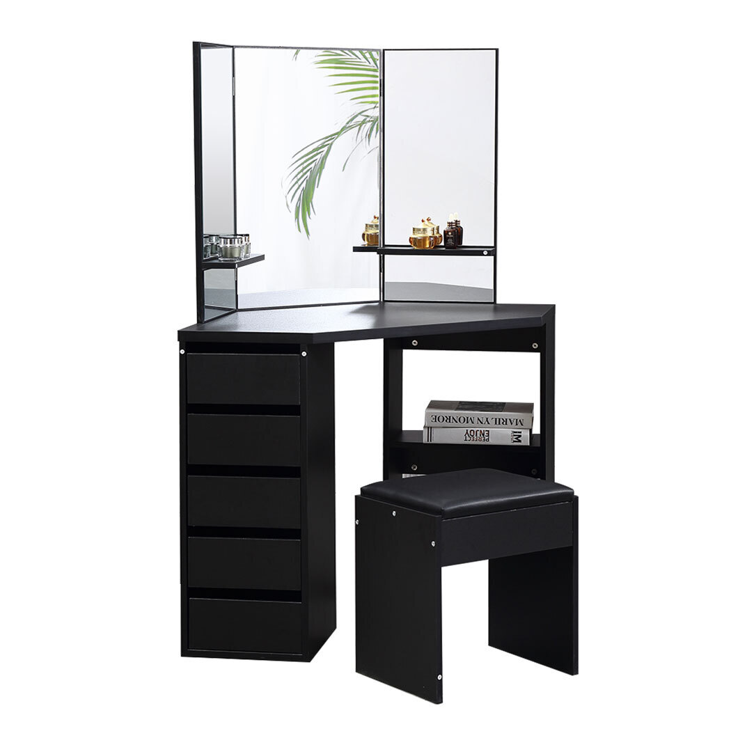 Levede Dressing Table is designed to furnish the look of your precious space. An essential product for all self-grooming enthusiasts. We understand how important a dressing table might be for anyone so we have special care and excellent craftsman expertise to get you a product that will enhance the look of your room. A unique combination of subtleness and elegance. Fall in love with its smooth textures and soft edges. Bewitched by its unique curved shaped design. A beautiful appearance indeed. A special black colour gives it a much-needed admiration. Unlike other dressing tables, we have used a special non-toxic paint, no more skin irritation and rashes associated with regular paint. Equipped with three crystal clear mirrors. Provides you a comprehensive view of yourself. Mirrors extend a great deal of help with your self-beautification process. PU padded seat provides ultimate comfort. Perfect for long sessions of self-grooming. Take a seat, relax your feet, and indulge in a process to look awesome and confident.