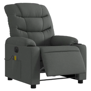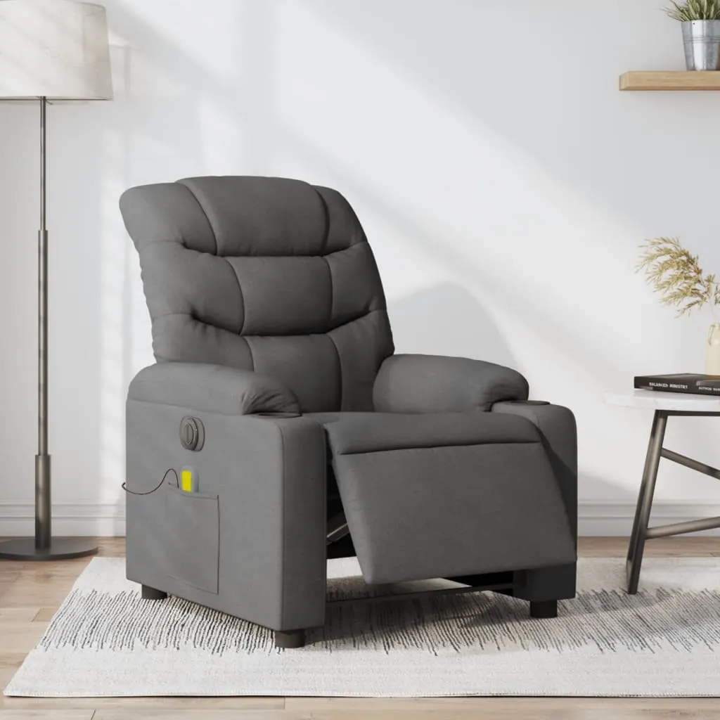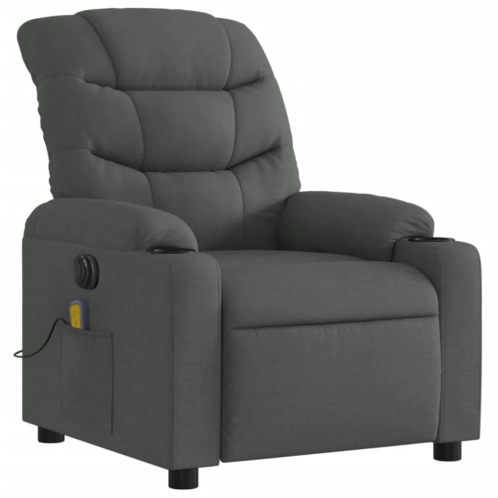 Sit back and drift away in this highly comfortable electric massage recliner chair! Electric reclining function: This recliner chair is equipped with an electric motor that helps automatically adjust the footrest and backrest to any position as per your comfort with a simple press of the button on the side of the chair. This feature allows for a maximum tilt of 135 degrees. Additionally, the backrest can go automatically back to the original place with an easy press of the button.Vibration function: The featured 6 massage points let you experience a better-targeted massage. Additionally, the included hand control allows you to pick different massage programs. The massage function is powered by the USB connector that requires a certified 5V USB power source (not included).Comfortable seat experience: The thickly padded seat, backrest, and wide armrests covered in fabric provide a cosy and warm sensation, making you feel embraced while seated. The fabric features a simple and clean look and is breathable and durable.Convenient cup holders and side pocket: This armchair has two convenient cup holders for your drinks and a side pocket for your remote control or keeping your essential items within easy reach.Solid and stable frame: The frame made of wood and metal provides a strong structure and stability. This reclining armchair is comfortable and durable.