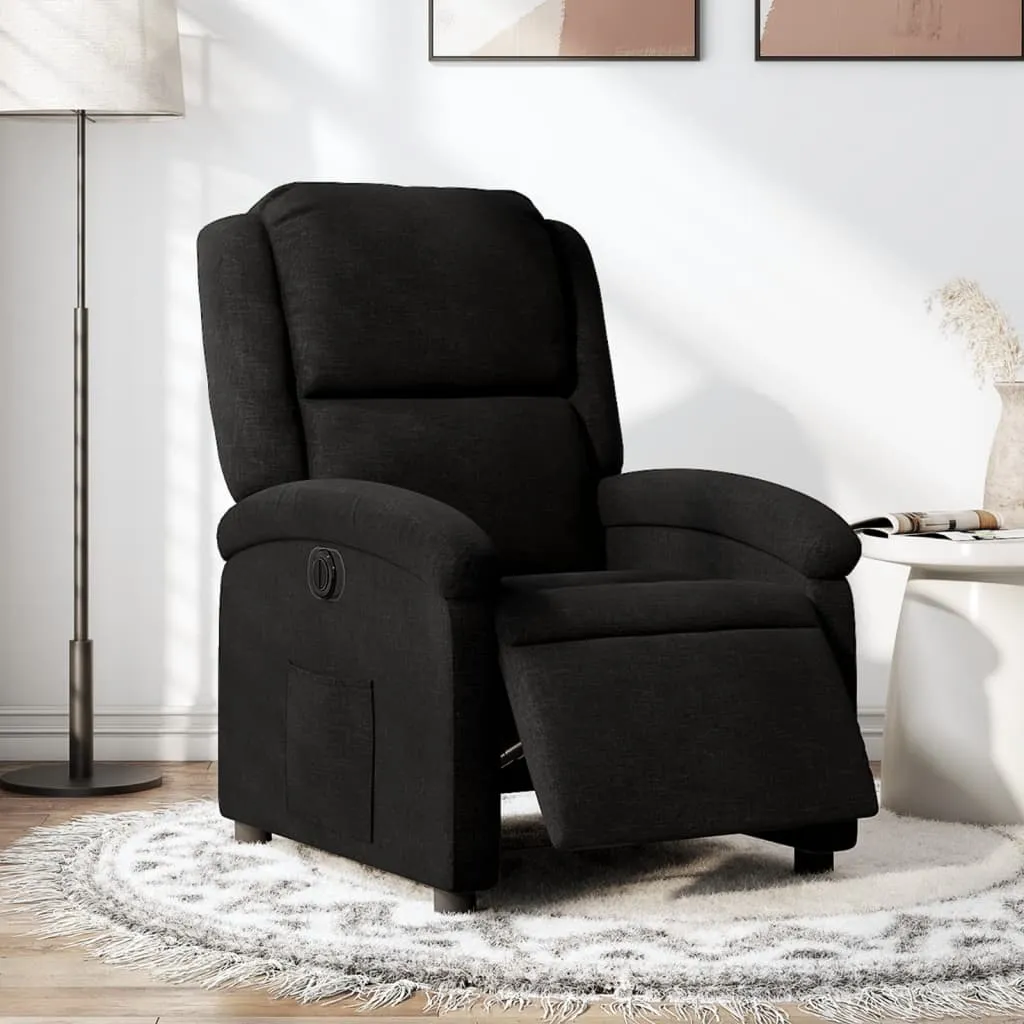 Sit back and drift away in this highly comfortable electric recliner chair! Electric reclining function: This recliner chair is equipped with an electric motor that helps automatically adjust the footrest and backrest to any position as per your comfort with a simple press of the button on the side of the chair. This feature allows for a maximum tilt of 135 degrees. Additionally, the backrest can go automatically back to the original place with an easy press of the button. Comfortable seat experience: The thickly padded seat, backrest, and wide armrests covered in fabric provide a cosy and warm sensation, making you feel embraced while seated. The fabric features a simple and clean look and is breathable and durable. Convenient side pocket: This armchair has a side pocket for you to keep your essential items within easy reach. Solid and stable frame: The frame made of wood and metal provides a strong structure and stability. This reclining armchair is comfortable and durable.