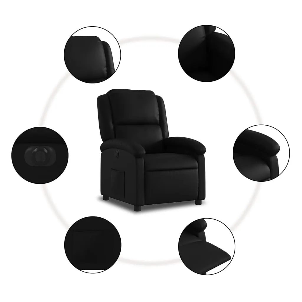 Sit back and drift away in this highly comfortable electric recliner chair! Electric reclining function: This recliner chair is equipped with an electric motor that helps automatically adjust the footrest and backrest to any position as per your comfort with a simple press of the button on the side of the chair. This feature allows for a maximum tilt of 135 degrees. Additionally, the backrest can go automatically back to the original place with an easy press of the button. Comfortable seat experience: The thickly padded seat, backrest, and wide armrests covered in faux leather provide a cosy and warm sensation, making you feel embraced while seated. The faux leather is a highly durable material. It is resistant to stain, making it easy to clean with a damp cloth. The smooth surface also gives a luxurious look and the beauty of real leather. Convenient side pocket: This armchair has a side pocket for you to keep your essential items within easy reach. Solid and stable frame: The frame made of wood and metal provides a strong structure and stability. This reclining armchair is comfortable and durable.