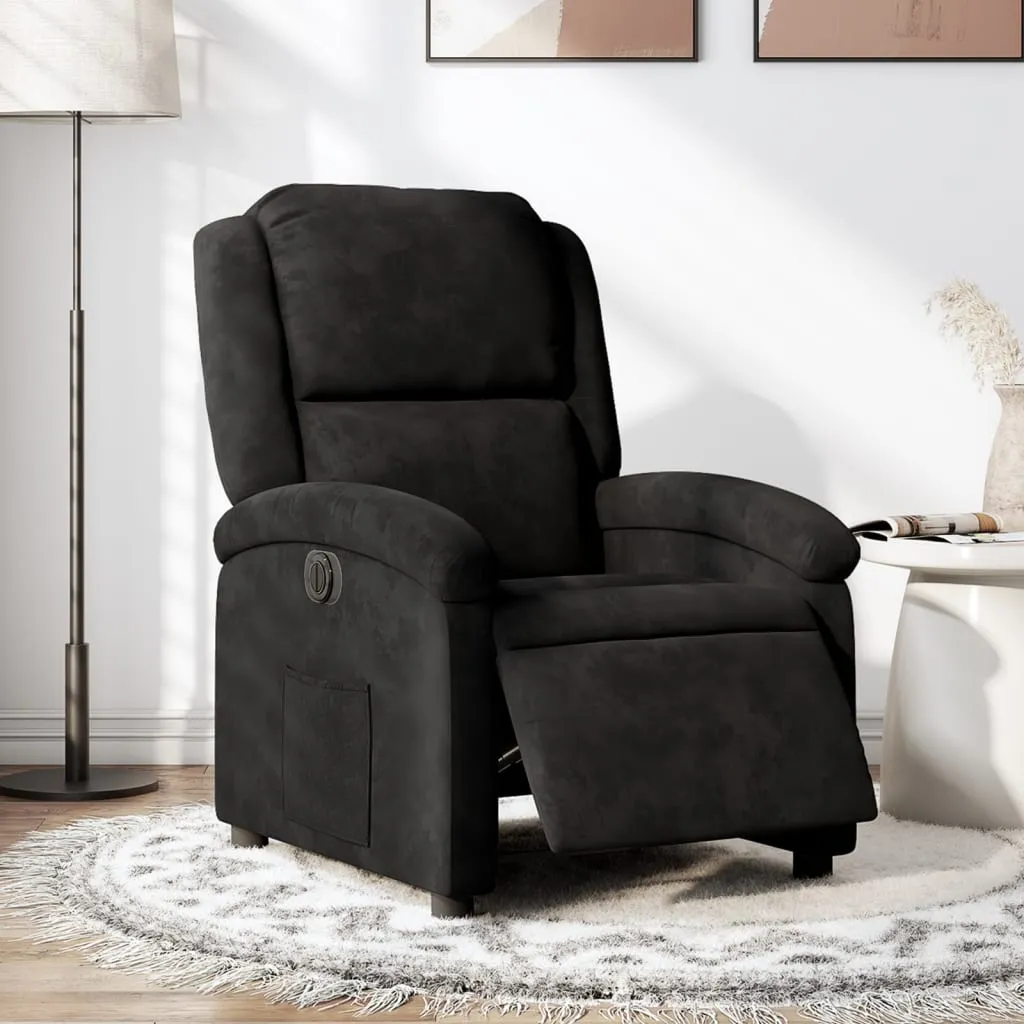 Sit back and drift away in this highly comfortable electric recliner chair! Electric reclining function: This recliner chair is equipped with an electric motor that helps automatically adjust the footrest and backrest to any position as per your comfort with a simple press of the button on the side of the chair. This feature allows for a maximum tilt of 135 degrees. Additionally, the backrest can go automatically back to the original place with an easy press of the button. Comfortable seat experience: The thickly padded seat, backrest, and wide armrests covered in velvet provide a cosy and warm sensation, making you feel embraced while seated. Velvet is a soft and comfortable fabric that feels nice against the skin. Convenient side pocket: This armchair has a side pocket for you to keep your essential items within easy reach. Solid and stable frame: The frame made of wood and metal provides a strong structure and stability. This reclining armchair is comfortable and durable.