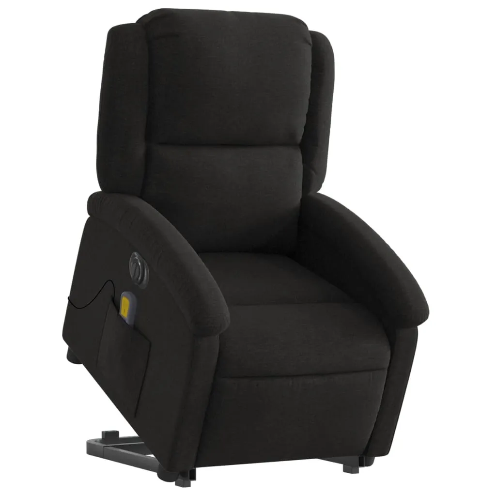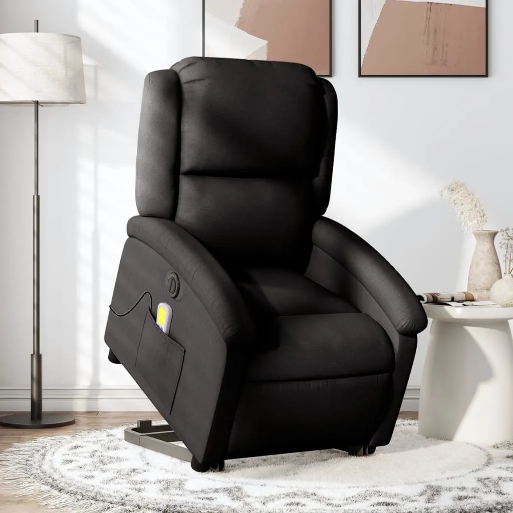Sit back and drift away in this highly comfortable electric stand up massage recliner chair! Power lift function: This recliner chair for the elderly is equipped with an electric motor for the lifting-up function. Thanks to the function that pushes the entire chair up, you can easily stand without stressing your back and knees with a simple press of the button. Electric reclining function: This reclining chair is also equipped with an electric motor that helps automatically adjust the footrest and backrest to any position as per your comfort with a simple press of the button on the side of the chair. This feature allows for a maximum tilt of 135 degrees. Additionally, the backrest can go automatically back to the original place with an easy press of the button. Vibration function: The featured 6 massage points let you experience a better-targeted massage. Additionally, the included hand control allows you to pick different massage programs. The massage function is powered by the USB connector that requires a certified 5V USB power source (not included). Comfortable seat experience: The thickly padded seat, backrest, and wide armrests covered in fabric provide a cosy and warm sensation, making you feel embraced while seated. The fabric features a simple and clean look and is breathable and durable. Convenient side pocket: This armchair has a side pocket for your remote control or keeping your essential items within easy reach. Solid and stable frame: The frame made of wood and metal provides a strong structure and stability. This reclining armchair is comfortable and durable.