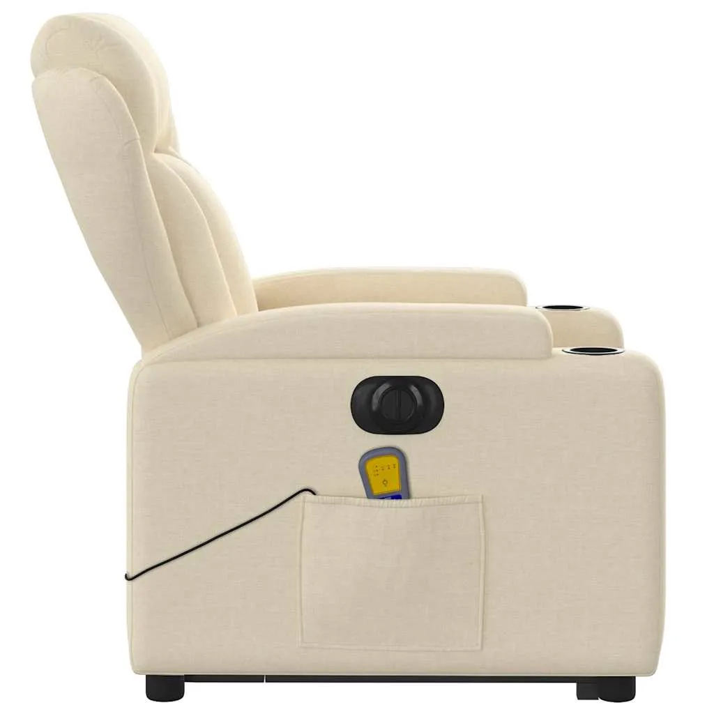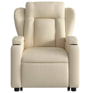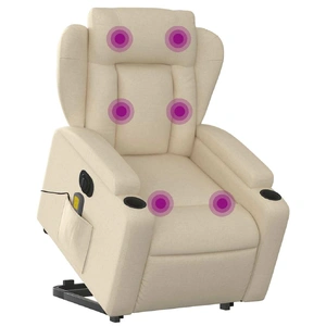 Sit back and drift away in this highly comfortable electric stand up massage recliner chair! Power lift function: This recliner chair for the elderly is equipped with an electric motor for the lifting-up function. Thanks to the function that pushes the entire chair up, you can easily stand without stressing your back and knees with a simple press of the button.Electric reclining function: This reclining chair is also equipped with an electric motor that helps automatically adjust the footrest and backrest to any position as per your comfort with a simple press of the button on the side of the chair. This feature allows for a maximum tilt of 135 degrees. Additionally, the backrest can go automatically back to the original place with an easy press of the button.Vibration function: The featured 6 massage points let you experience a better-targeted massage. Additionally, the included hand control allows you to pick different massage programs. The massage function is powered by the USB connector that requires a certified 5V USB power source (not included).Comfortable seat experience: The thickly padded seat, backrest, and wide armrests covered in fabric provide a cosy and warm sensation, making you feel embraced while seated. The fabric features a simple and clean look and is breathable and durable.Convenient side pocket: This armchair has a side pocket for your remote control or keeping your essential items within easy reach.Solid and stable frame: The frame made of wood and metal provides a strong structure and stability. This reclining armchair is comfortable and durable.