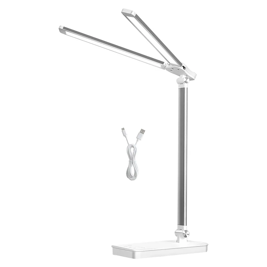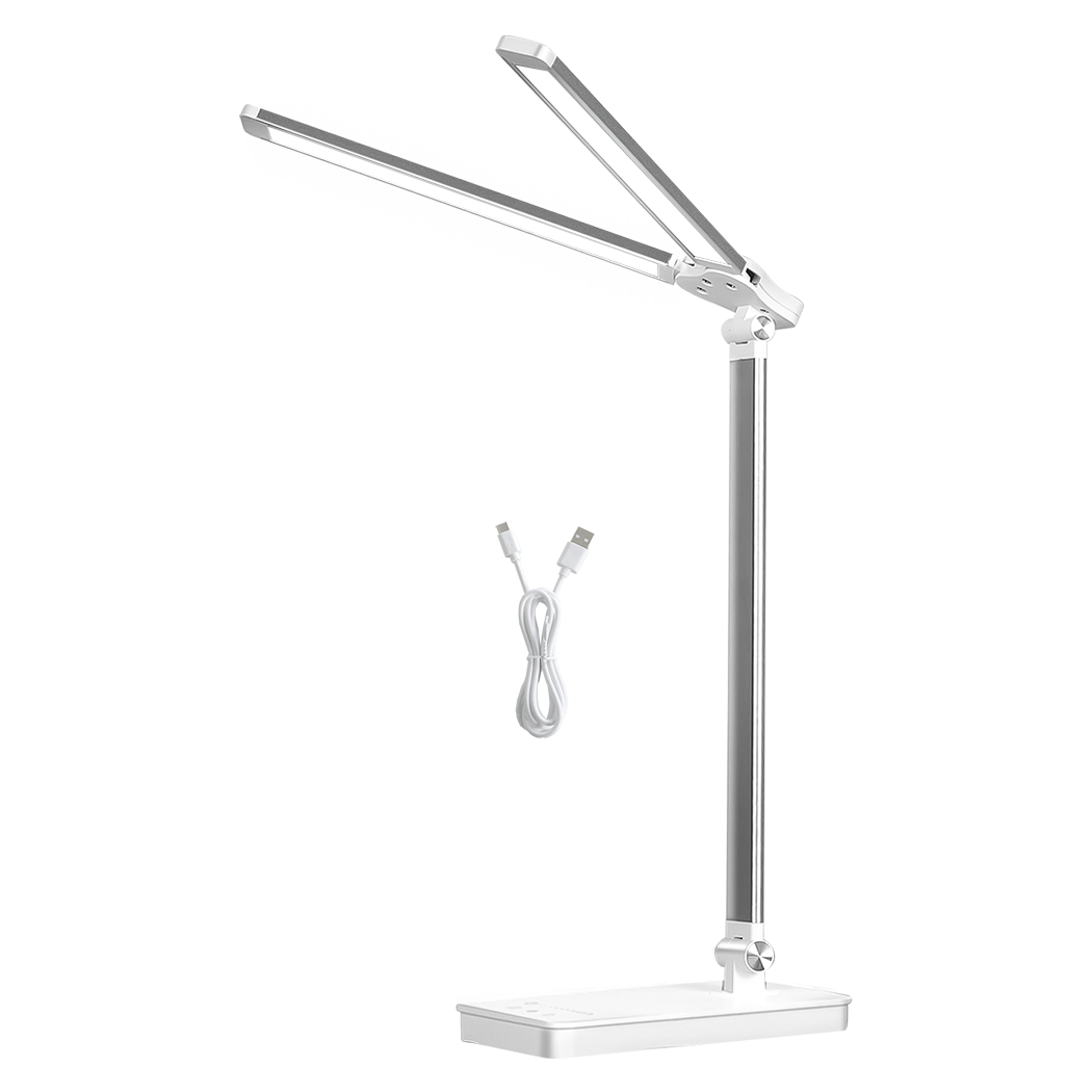 With 5 color temperatures (3000K-6000K) and 10 brightness levels, this dimmable desk lamp provides customizable lighting for home offices, dorm rooms, bedside tables, and workstations. The dual-head design ensures wide illumination, making it ideal for large desks.