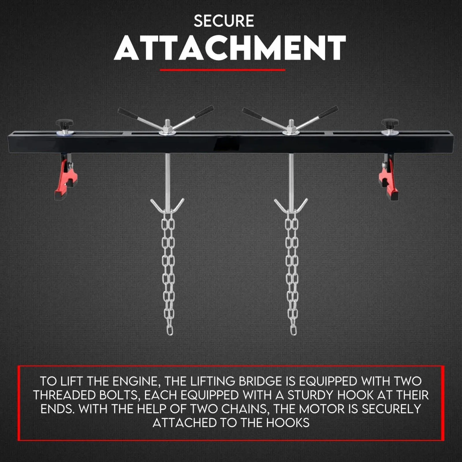Fiernero Engine Support Beam is constructed with heavy duty powder coated steel for durability. This 500 KG capacity support beam is ideal for providing support for engine transmission repairs.