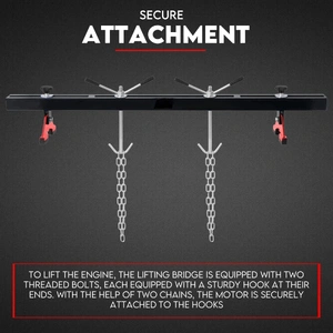 The dual hooks allow the engine to be held accurately in the desired position to allow the user to gain easy access to areas in need of attention and repair.