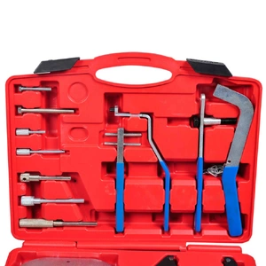 This comprehensive timing tool set of over twenty tools enables the correct engine timing to be made when replacing the timing belt. This set is suitable for use on most popular cars with petrol or diesel engines.This tool set is made from highly polished steel which is hardened and tempered for durability. All tools come in a blow molded case for easy storage and transportation.Delivery includes timing pins, crankshaft locking pins, camshaft setting tool, mounting bracket and camshaft gear alignment tool.