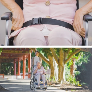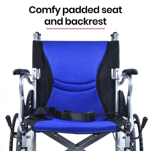 This premium lightweight wheelchair features fold up footrests allowing for access onto the wheelchair. The comfy padded seat and generously proportioned backrest ensure a comfortable ride. And, thanks to the 2 second folding action and ergonomic handles, it makes for a relaxing day out for any helpers, too! They can activate the easy access dual brakes to safely go down hills and ramps, while dual parking brakes can lock the wheels into position a perfect time to pull out some reading material from the backrest pouch!