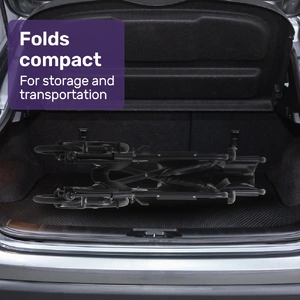 Thick 12-inch rear wheels ensure a smooth ride over bumps on a range of surfaces. Not only that, they also offer the practicality of not requiring to be refilled with air and will never experience a puncture! With a swift 2-second folding action, caregivers can easily transport this wheelchair wherever it's needed.
