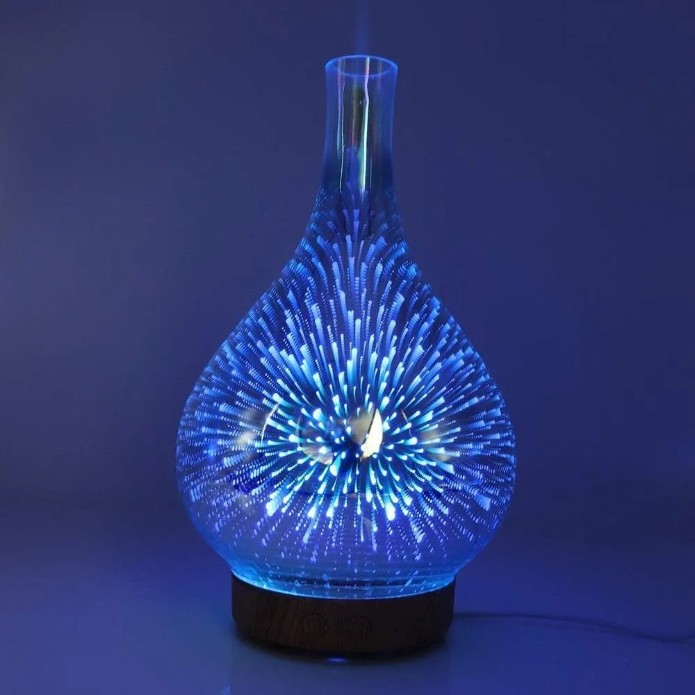 100ml Ultrasonic Aroma Diffuser, 3D fireworks glass design, with a black finish for the base.