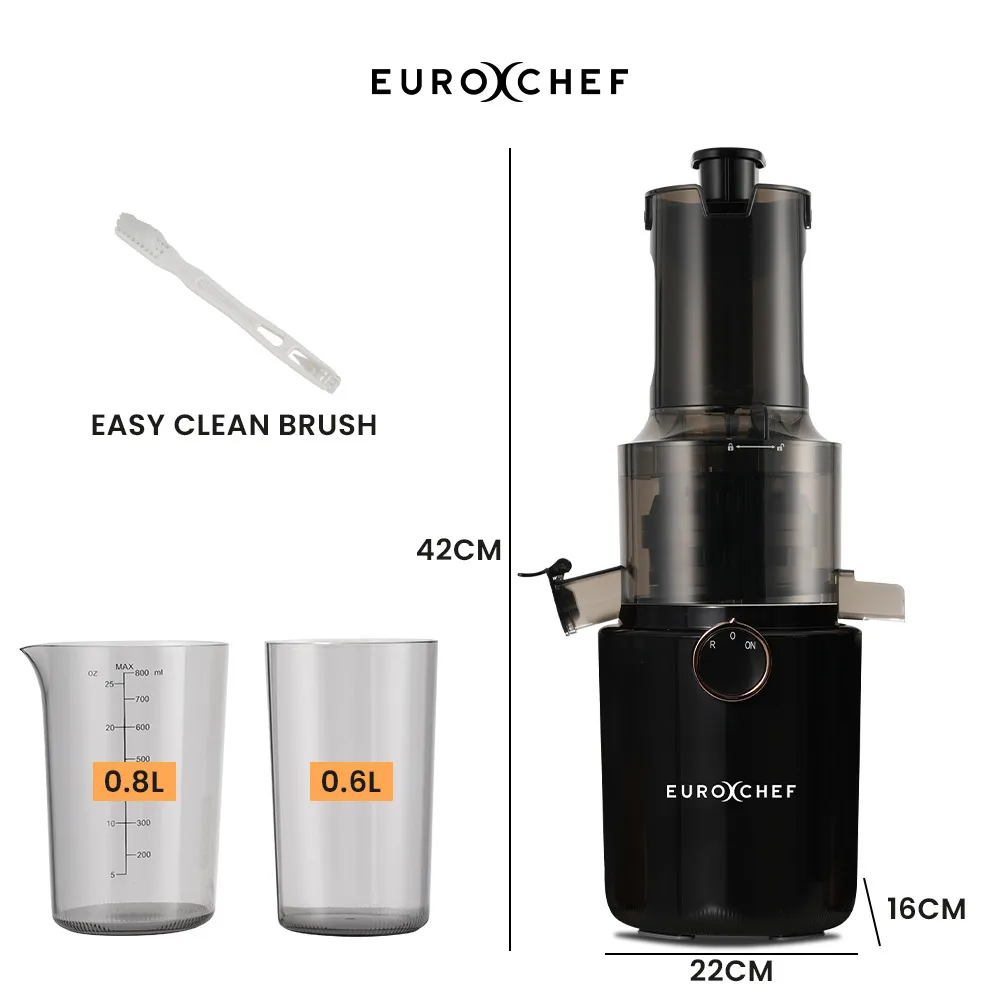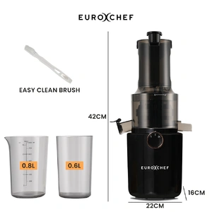 Designed with quick assembly and easy cleaning in mind, its dishwasher-safe parts make cleanup a breeze. Durable, efficient, and easy to use, the EuroChef Cold Press Juicer is the ultimate addition to any kitchen, providing fresh and tastier nutrient-rich juices with ease.