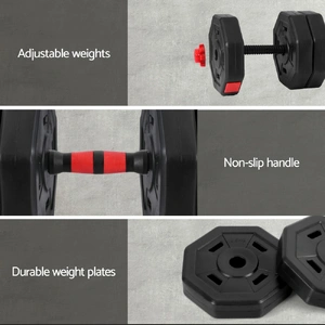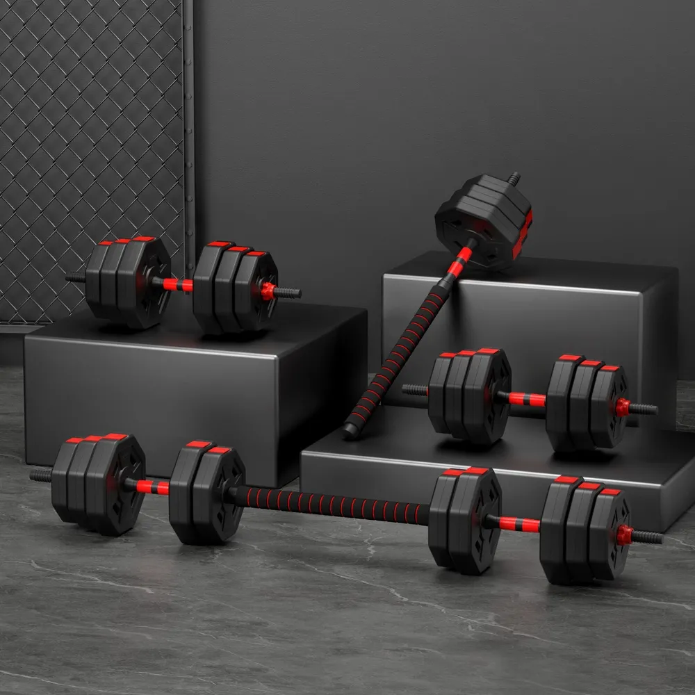 The Everfit Dumbbell Set is a 4-in-1 adjustable barbell and dumbbell combo, offering versatile weight options in a compact design. Perfect for home gyms, this 40kg set includes durable weight plates and bars for strength training, cardio, and muscle toning. Ideal for fitness enthusiasts seeking a space-saving, all-in-one workout solution. (Safety Note: Never stack more than two weights near the Barbell Connector. The Barbell Connector is for connection only – not for load-bearing.)