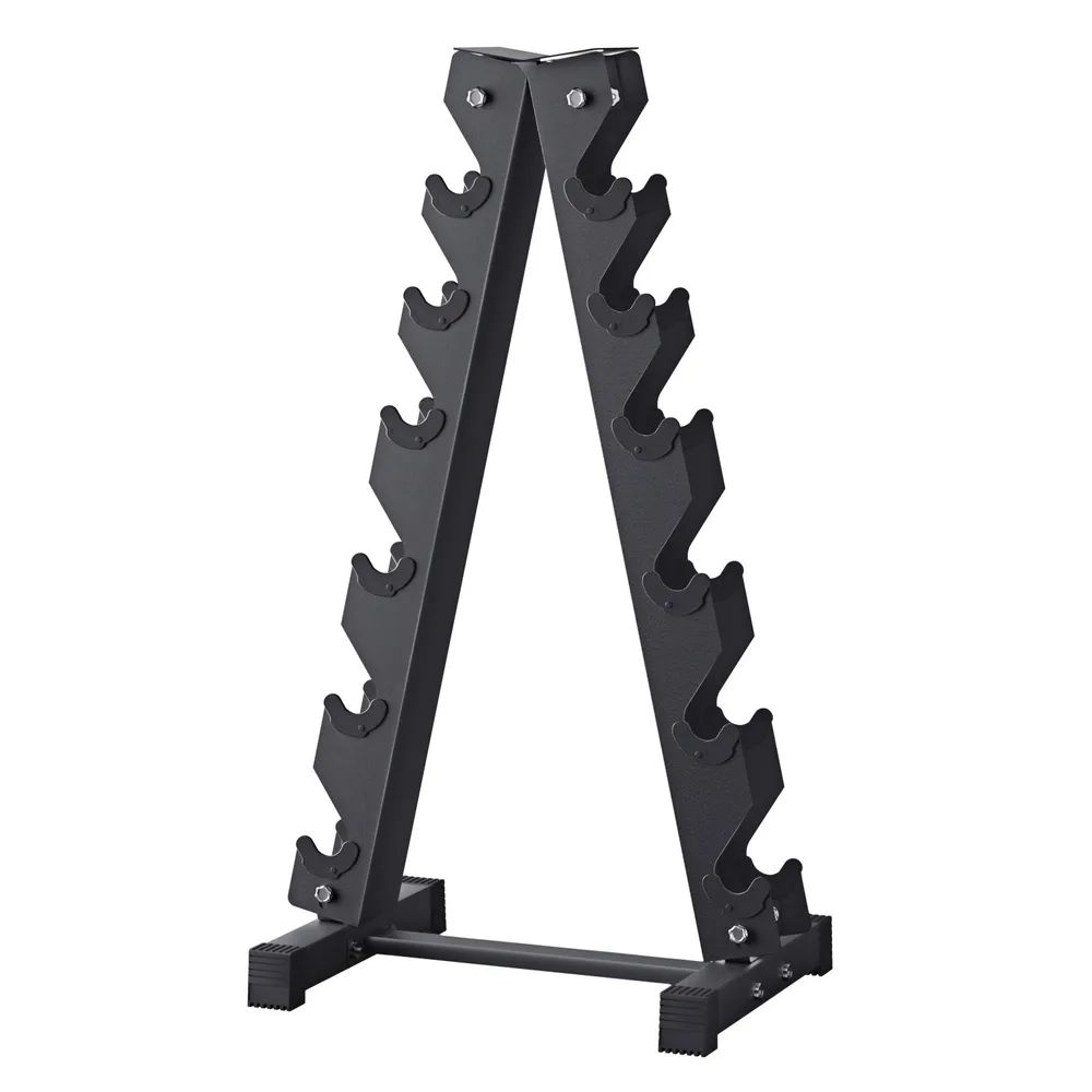 Organize your gym with our 6-Tier Dumbbell Rack. It features a stable A-frame triangular design that can hold up to 200kg of weights, offering a practical storage solution for your workout equipment. Its easy and safe design ensures stability during rigorous workouts, while its compact size allows for space-saving storage. The rack is easy to install, so you can get your gym up and running in no time at all. Made with high-quality materials, our dumbbell rack is durable and perfect for any home gym or fitness studio. Keep your weights organized and easily accessible with our smart storage solution.