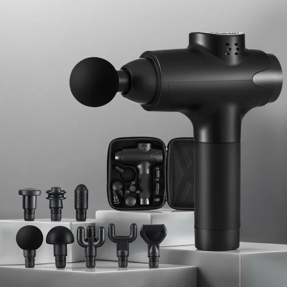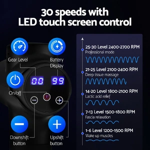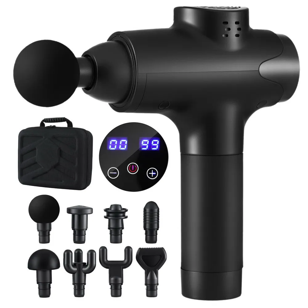 Whether you're a hard-core gym junkie, a dedicated office worker or recovering from an injury, you'll find relief with an Everfit Massage Gun. With a powerful high-torque brushless motor, the massage gun allows for high-frequency vibration at 1200-2700 strokes per minute and penetrates deeply for muscle relaxation from the comfort of home. The massage gun uses long-lasting and efficient rechargeable lithium batteries that allow the gun to run for up to 3 hours. There are 30 speed levels to suit various purposes; from simply waking up your muscles to relieving lactic acid and assisting muscle recovery after exercising, or even intense professional-level massages. The non-slip rubber handle provides a comfortable grip to reduce hand fatigue, and the device operates quietly for a comfortable massage experience. The smart touch LED display makes it easy to customize your massage experience. With 8 unique head attachments, the Everfit Massage Gun can help you dissipate fatigue, relax your muscles and relieve neck and back pain. Gets yours today and continue your fitness journey in comfort.