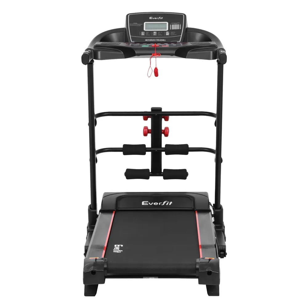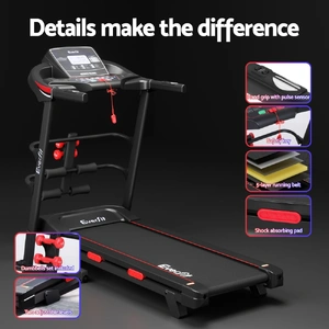 Introducing our premium Everfit treadmill with a robust composite running board and strong powder-coated steel frame. Featuring a user-friendly control panel, clear digital LCD display, high-performance motor, and durable running belt. Enjoy automatic incline, shock absorption, heart rate monitoring, and Bluetooth connectivity.