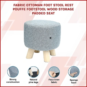 Its simple design profile makes it an excellent choice in homes of every style, while its neutral colour blends in beautifully with a wide range of colour palettes. Four natural pine legs give it beauty and stability. With a maximum weight capacity of 100kg, this ottoman can seat people of almost every size.