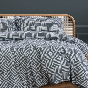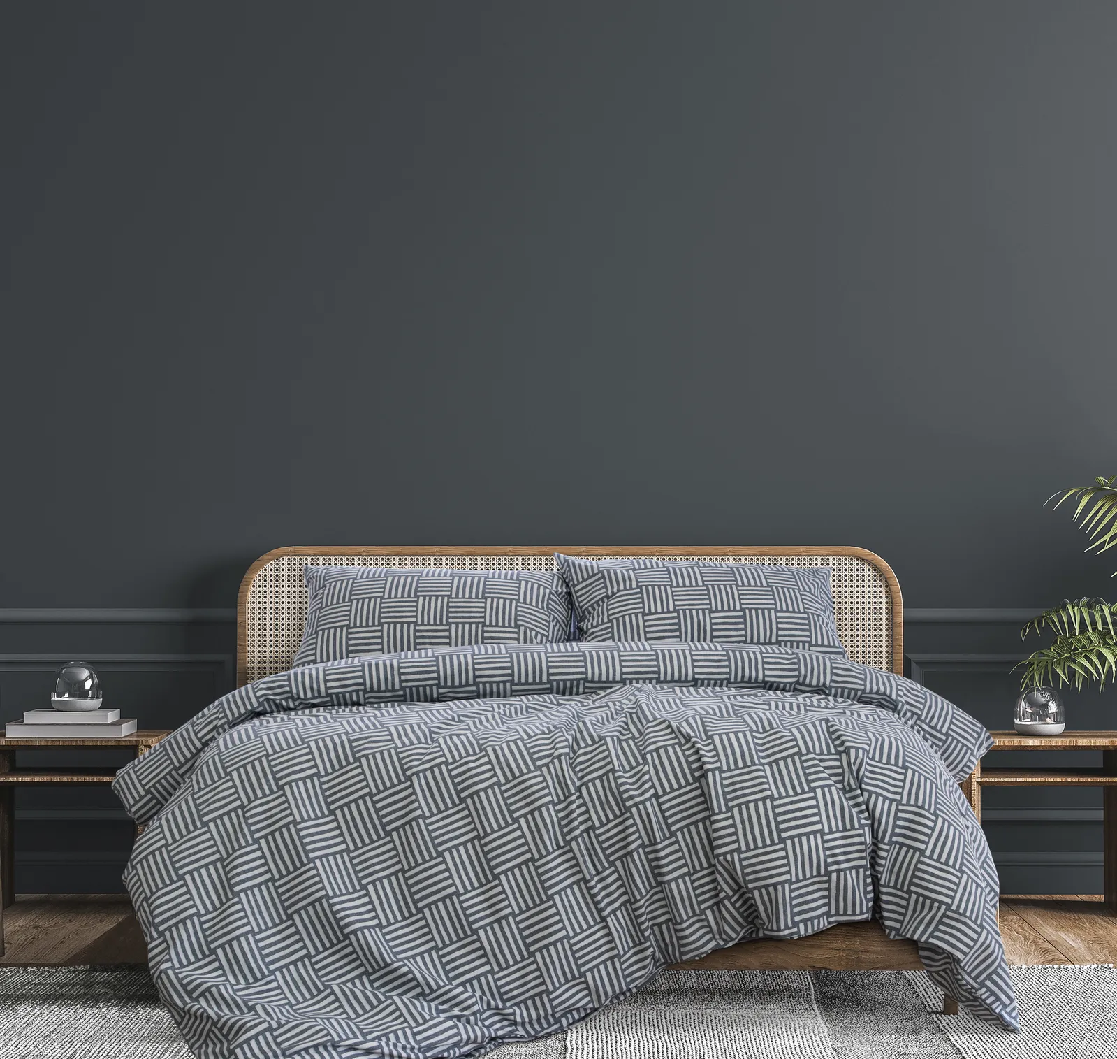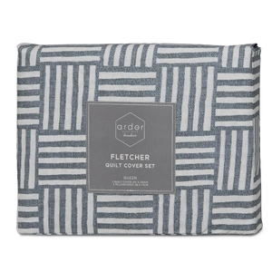 Ardor Boudoir introduces Fletcher Quilt Cover Set in a tonal Faded Indigo. Fletcher displays an organic thatched geo pattern adding soft masculine touch to your bedroom style.