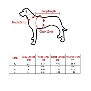 Size: XS: Back Length 21cm, Neck Circumference 25-35cm, Chest Circumference 30-42cm