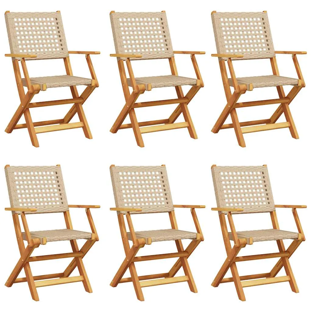Relax and enjoy the outdoors in these comfortable folding garden chairs! Robust and stable: Solid acacia wood is known for its strength and durability. Its diverse colours and unique grain patterns give it an attractive appearance. With good stability and resistance to weathering, it is ideal for crafting indoor and outdoor furniture.Durable material: PE rattan, also known as poly rattan, is a strong, low-maintenance synthetic material that looks like natural rattan. It's lightweight, easy to clean, and commonly used for outdoor furniture due to its durability and weather-resistant properties.Easy to carry and store: The chair can be easily folded away when not in use, for easy storage and transportation.Practical design: The practical and flat wooden handrail allows you to rest your hands on it while enjoying your outdoor time.Various usages: The foldable chair has a wide range of uses and can easily meet your needs in any outdoor setting, such as gardens, patios, balconies, and so on. Good to know:To make sure your outdoor furniture stays beautiful, we recommend protecting it with a waterproof cover.
