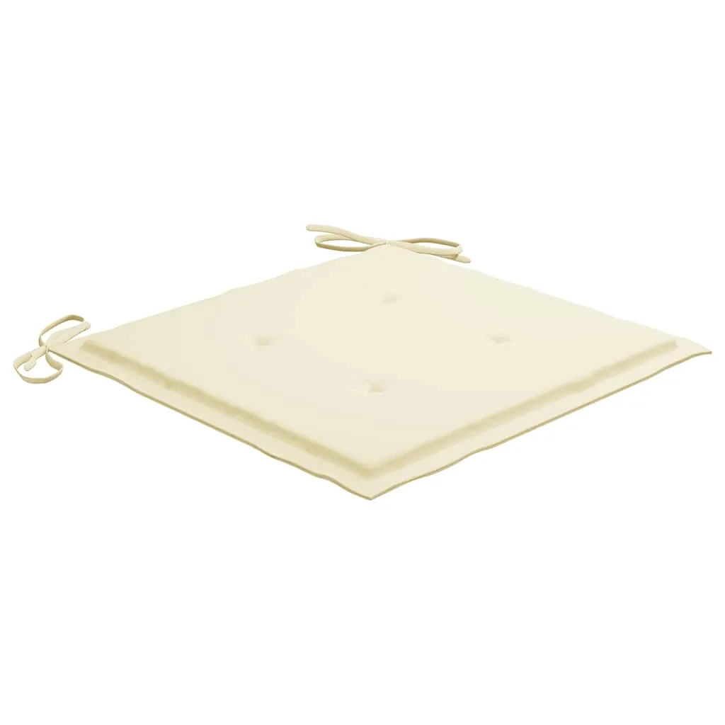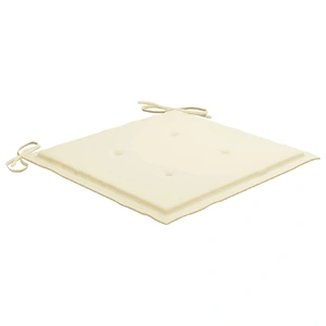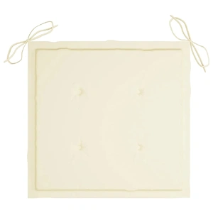 This wooden garden chair set features a timeless design. The outdoor chairs suit any settings, such as homes, offices, bars and cafes, thanks to their simple yet stylish design. Constructed from extremely durable teak hard wood, this set of teak furniture has been seasoned, kiln dried and then fine sanded to give a very smooth appearance. Teak wood is known for its exceptional strength and weather resistance, making it far more suitable for garden furniture than any other kind of wood. Teak wood is the perfect choice if you want to purchase a long lasting piece of garden furniture. Thanks to the sanded surface, the dining chairs are weather-resistant and easy to clean. They can also be folded to save storage space when not in use. What's more, the included cushions provide extra comfort. Each cushion has 2 sets of ropes to fix it on the chair tightly. Note: In order to extend the life of your outdoor furniture, we recommend you to clean it regularly and do not leave it outdoors without protection unnecessarily.Clean: Use a mild soap solutionStoring: If possible, store in a cool, dry place indoors. If the product is stored outdoors, protect it with a waterproof cover. Wipe and dry the excess water or snow from flat surfaces after a rain or snowfall. Allow sufficient air circulation to avoid moisture-related damage.