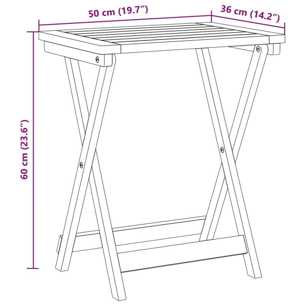 Enjoy your leisure time with your family and friends around this wooden garden table! Solid acacia wood: Solid acacia wood is a beautiful natural material. Acacia wood is a tropical hardwood, which is dense, sturdy, and durable.Foldable design: The outdoor table can be folded away for easy movement and transportation. You can store it with less space when not in use.Stable top: The stable top of the dining table is ideal for placing your drink or any other necessity you need close at hand.Easy-to-clean surface: The oil-finished surface makes this folding table easy to clean with a damp cloth.Wide applications: The table has a timeless design and suits almost any decor. You can place it on your home or any commercial patio, garden, balcony, and so on. Good to know:To make sure your outdoor furniture stays beautiful, we recommend protecting it with a waterproof cover.