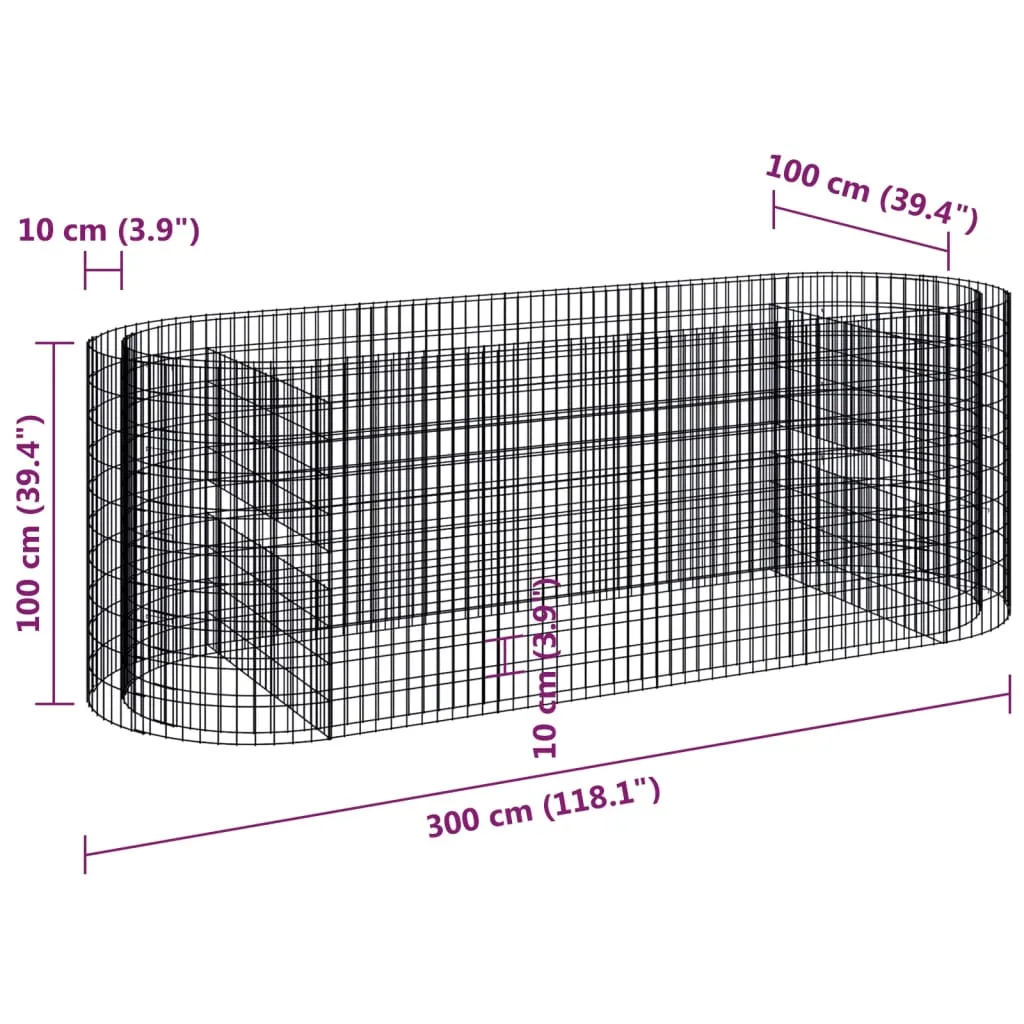 Gabion Raised Bed Galvanised Iron 300x100x100 cm