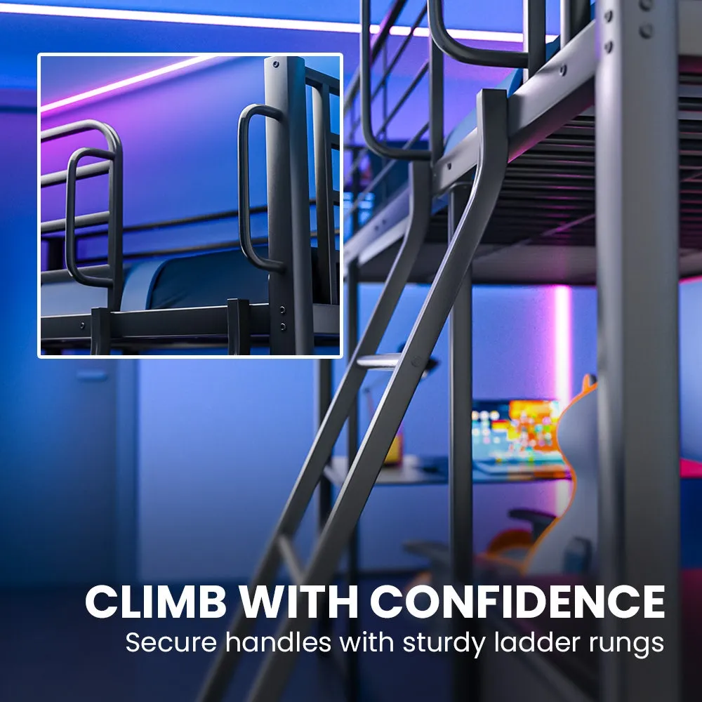 With a steel frame, fixed ladder, and high 120kg weight rating, this Single Loft Bed is designed to handle everything from school nights to weekend gaming marathons.