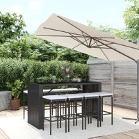 This trendy garden bar set, combining both style and function, is surely meant to be the centrepiece of your garden, patio, and any other living space. Weather-resistant material: PE rattan, also known as poly rattan, is weather resistant and easy to clean. It remains beautiful on the outside for a long period of time. It offers great quality, convenience and an aesthetic look.Comfortable seating: The bar stool is designed with a built-in footrest to offer you a comfortable seating experience. The thickly padded seat cushion provides ultimate comfort during your sitting time.Tempered glass tabletop: The tabletop is made of tempered glass, making it easy to clean. Additionally, it offers excellent support for holding your drinks, snacks, and your favourite decorations.Sturdy and stable frame: The powder-coated steel frames make the pub set sturdy and stable for daily outdoor use.Wide applications: The bar table and stool, with its remarkable design, creates a pleasant overall appearance that integrates effortlessly into any environment. Good to know:To make assembly as easy as possible, each product is delivered with a manual.Note:To make sure your outdoor furniture stays beautiful, we recommend protecting it with a waterproof cover.
