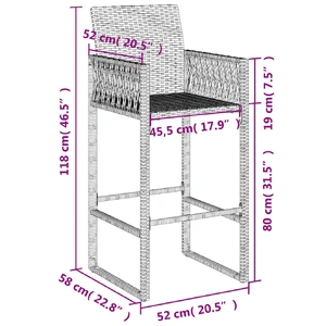 Relax and enjoy the outdoors in these comfortable garden bar stools! Durable material: PE rattan, also known as poly rattan, is a strong, low-maintenance synthetic material that looks like natural rattan. It's lightweight, easy to clean, and commonly used for outdoor furniture due to its durability and weather-resistant properties. Comfortable seat experience: Featuring armrests and a backrest, the outdoor chair gives you the utmost comfort. Robust and stable frame: The powder-coated steel frame ensures that the garden furniture is strong and stable for daily outdoor use. Good to know:To make sure your outdoor furniture stays beautiful, we recommend protecting it with a waterproof cover.
